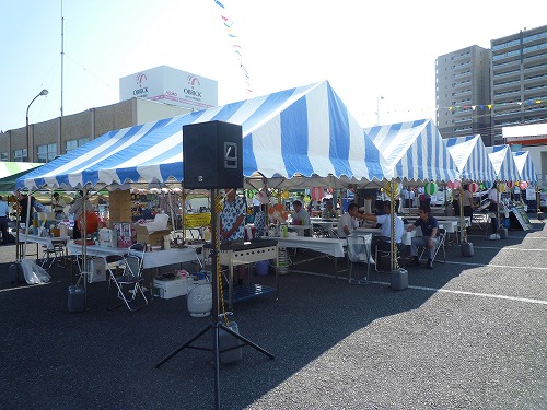 富士登山した登山客の皆様を、地元商店街の皆さんが世界遺産センター前でおもてなしをしました。