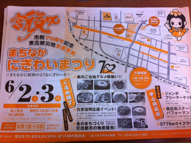 明日6/2(土),3(日)に市制70周年記念,東北被災地支援事業「まちなか にぎわい祭り」があります。