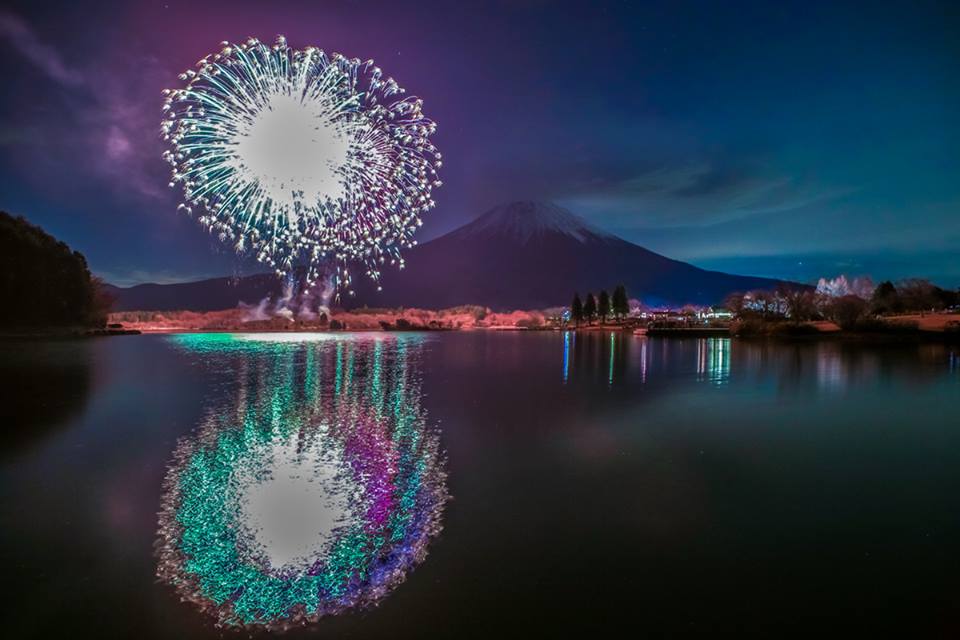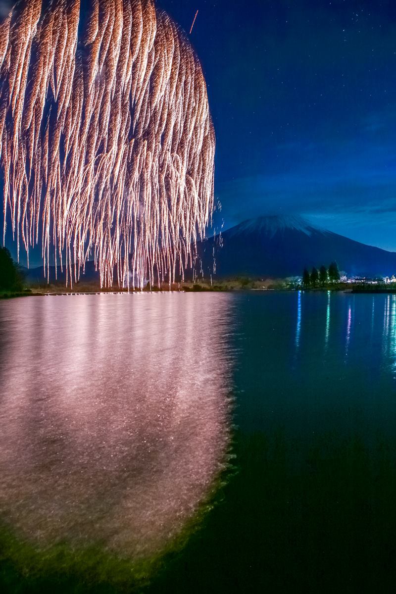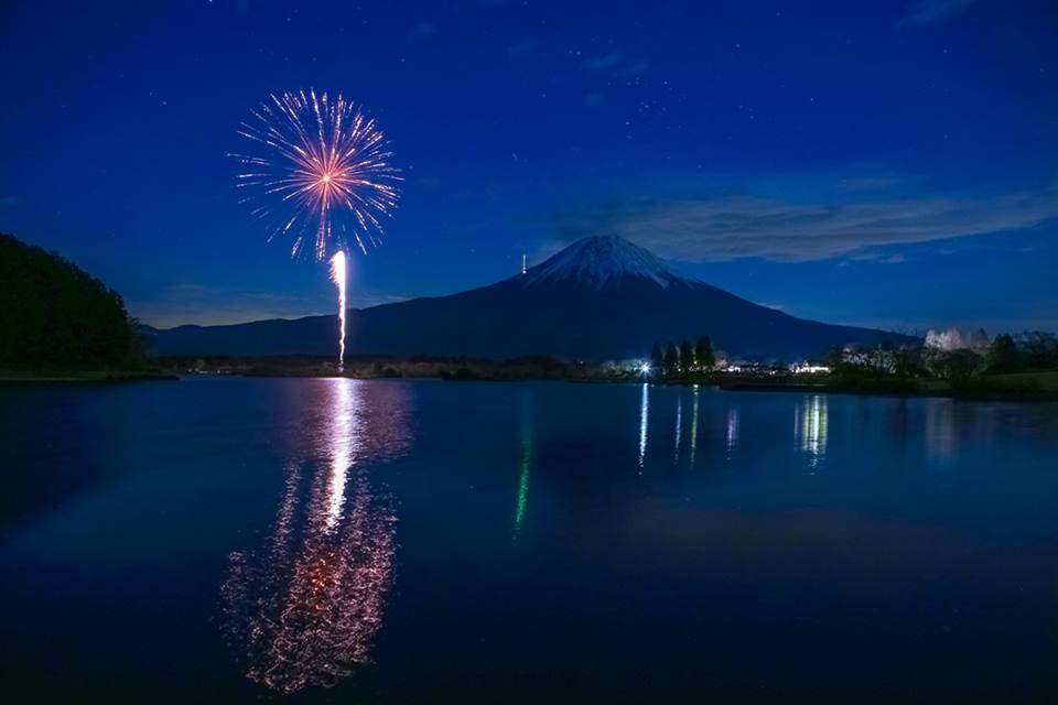 富士山が薄っすらと見える幻想的な空気の中、美しい花火大会を楽しめました。