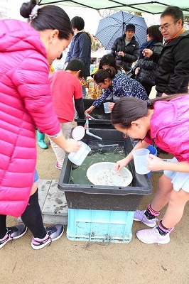 育てマスターさんによる稚魚すくいも大好評でした