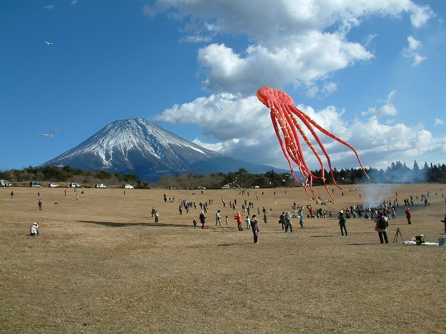 富士山の麓、澄み切った青空の中で凧揚げを思いっきり楽しみませんか。