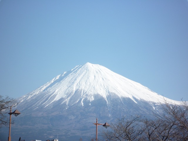 青空に雪化粧をした富士山がとってもきれいに映えてます。