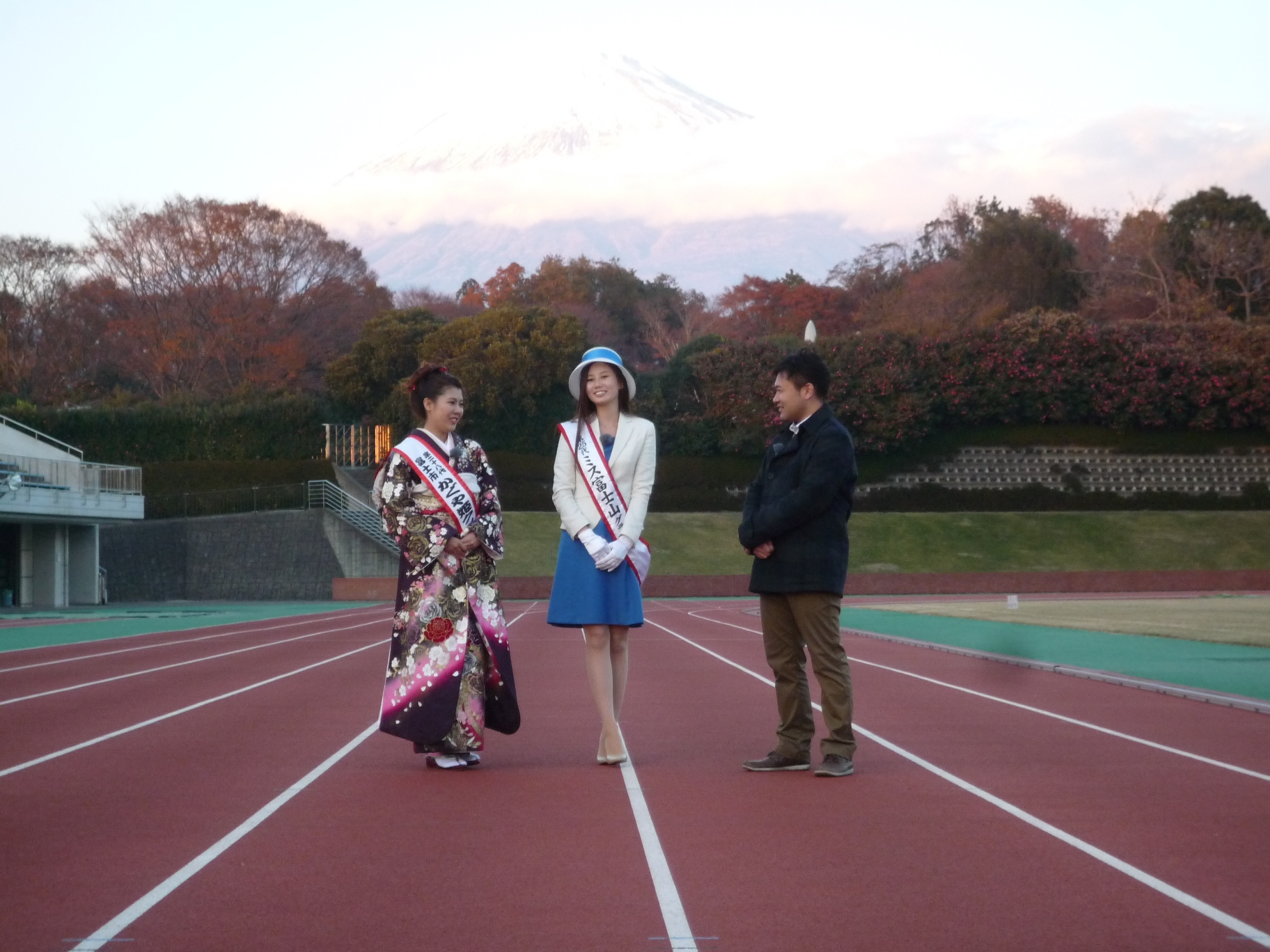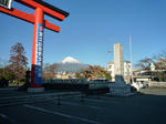 浅間大社からの雪の富士山。