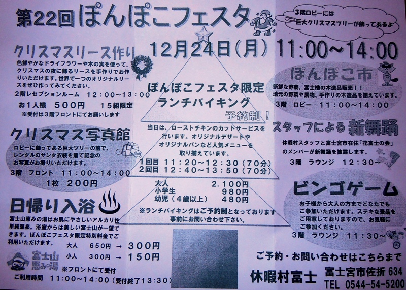 ご予約・お問い合わせは「休暇村富士」 ℡0544-54-5200です。