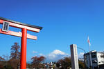 真っ青な空と富士山の雪の白の対比がきれいです。