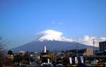富士山には、笠雲がかかっています。