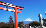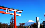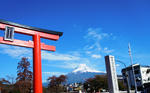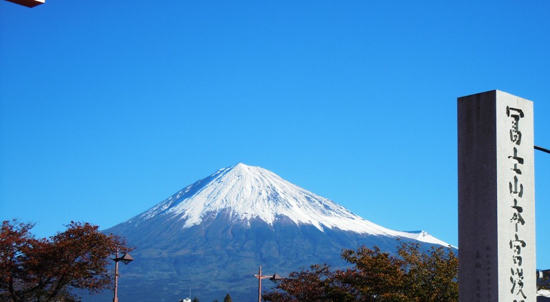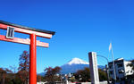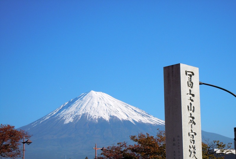 真っ青な空、白い雪の対比がきれいな富士山です。