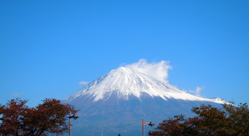 今日は快晴ですが、富士山だけ雲がかかっています。