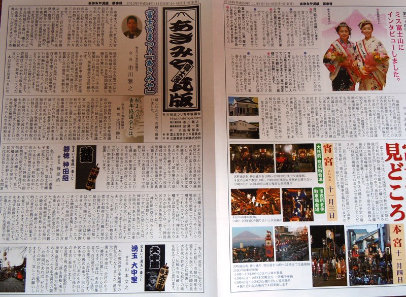 「秋祭り青年協議会」発行の「富士宮 あきみや 瓦版」を観光案内所においてあります。