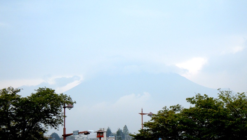 天気は回復しましたが曇り空です。朝から薄い雲に覆われてぼんやりと富士山が見えています。