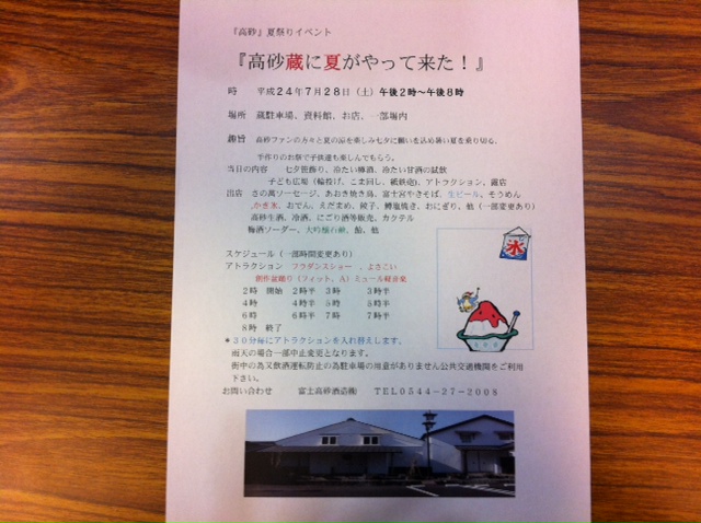各店舗主催のゲーム(パスポートを500円で購入)があります。かくたに「おいもたからさがし」,朝霧乳業「みるく選手権」,ビュッフェレストランふじさん「野菜あてクイズ」,上野製菓「ぱくぱく競争」,富士園お茶工房茶心庵「きき茶選手権」,富士正酒造「お酒選手権」があります。