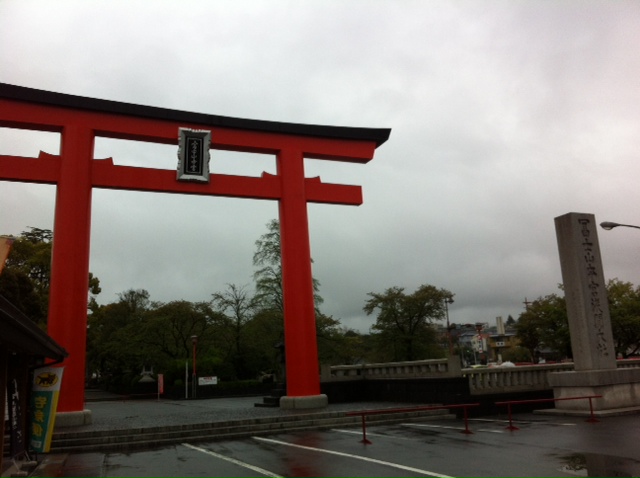 お二人は,今日(4月26日)は山梨県からの観光客30人に浅間大社,湧玉池の歴史,由来など案内します。約1時間の観光ガイドになります。観光案内は無料です。