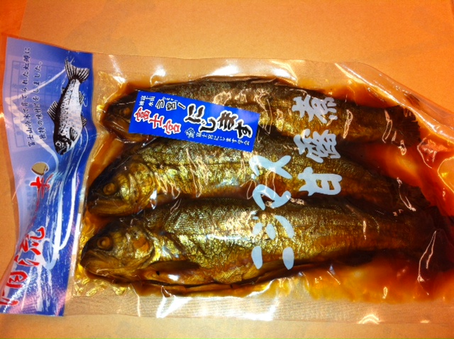 「にじますの甘露煮」…きれいに澄んだ富士宮の冷水で育ったにじますは骨まで柔らかく,お酒のお供,炊きたてのご飯…きっと満足する一品です。